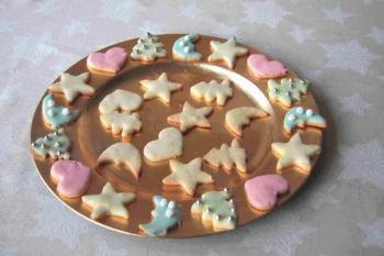 Mehl, Zucker, Vanillinzucker und Margarine zu einem Teig verkneten. 30 Minuten kalt stellen und ruhen lassen. Auf einer bemehlten Arbeitsfläche ausrollen und Plätzchen ausstechen. Auf zwei Bleche verteilen und bei 180 Grad ca. 10 Minuten backen. Nach dem Backen auskühlen lassen. Den Puderzucker mit Zitronensaft anrühren und auf 4 verschiedene Schüsseln verteilen In jede Schüssel einen winzigen Tropfen Lebensmittelfarbe geben und verrühren. Anschliessend die Kekse mit Puderzucker und Streuseln verzieren.