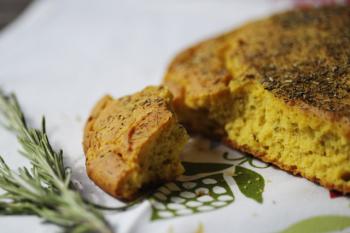 Alle Zutaten (von der Kräutern der Provence 1 EL zurückbehalten) mit den Knethaken des Mixers zu einem glatten Teig verkneten. Ein Blech mit Backpapier belegen und den Teig daraufgeben. Mit angefeuchteten Fingern zu einem Fladen formen.Mit den restlichen Kräutern bestreuen.